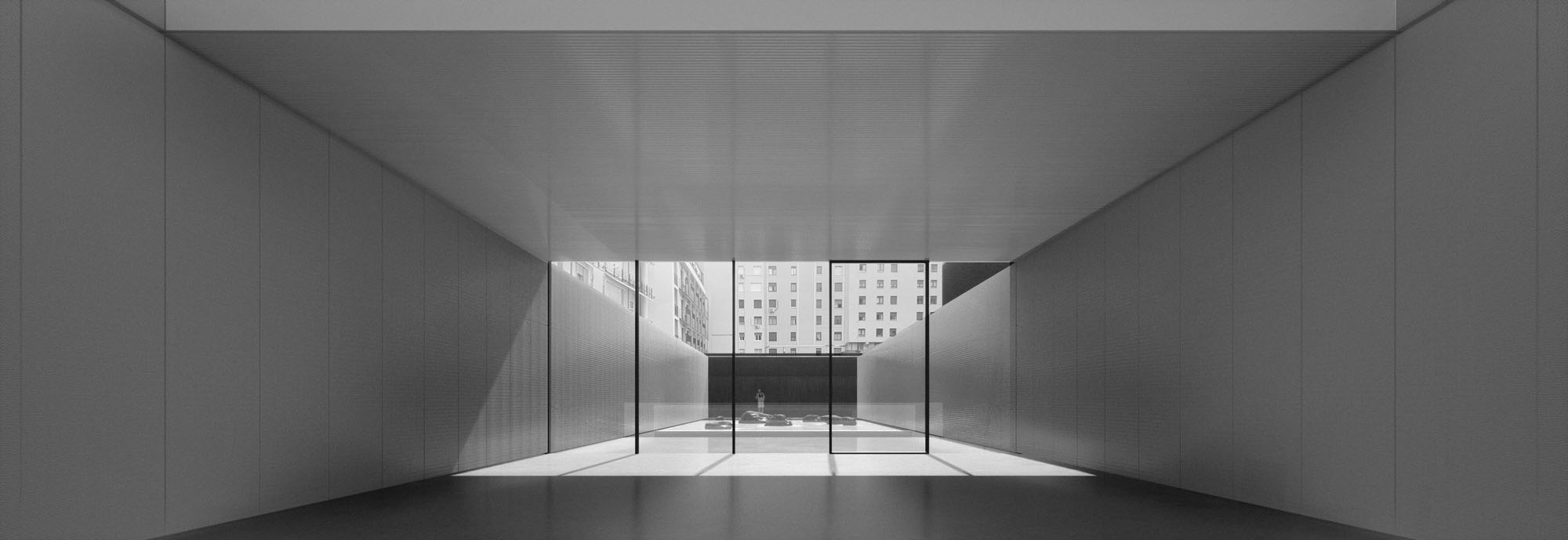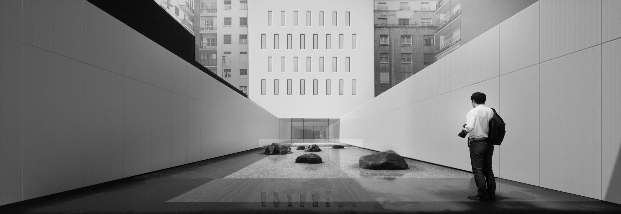 Este vacío central se concibe como un espacio de reflexión y de encuentro. Pensamos en un patio que nos transporte a espacios como el Templo de Ryoan-Ji en Kyoto. Un lugar simbólico, donde la ausencia y la presencia conviven. Allí hay restos de la ciudad omnipresente, pero esta se desvanece para dar lugar al vacío. Un vacío que nos rescate de la alienación de lo cotidiano y nos conecte con nosotros mismos y con lo que somos, y lo que somos es precisamente nuestra historia.